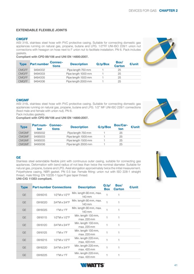 appliances running on natural gas, propane, butane and LPG. 1/2” MF UNI-ISO 228/1 connections