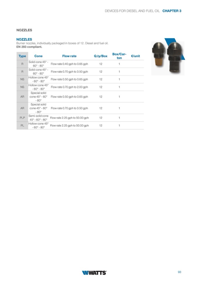 Burner nozzles, individually packaged in boxes of 12. Diesel and fuel oil.