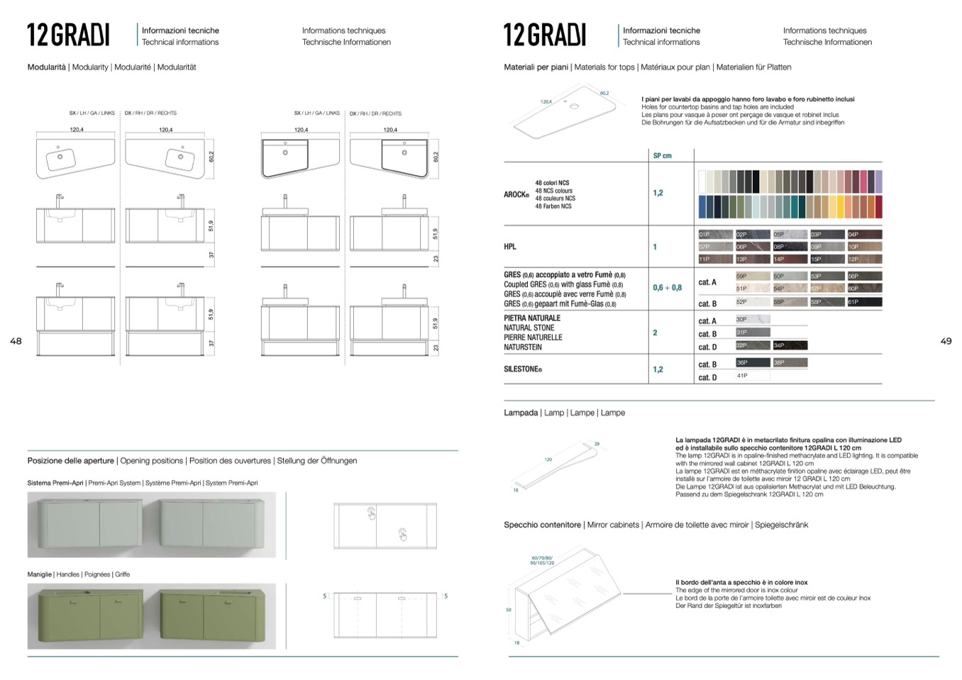 installè sur l’armoire de toilette avec miroir 12 GRADI L 120 cm