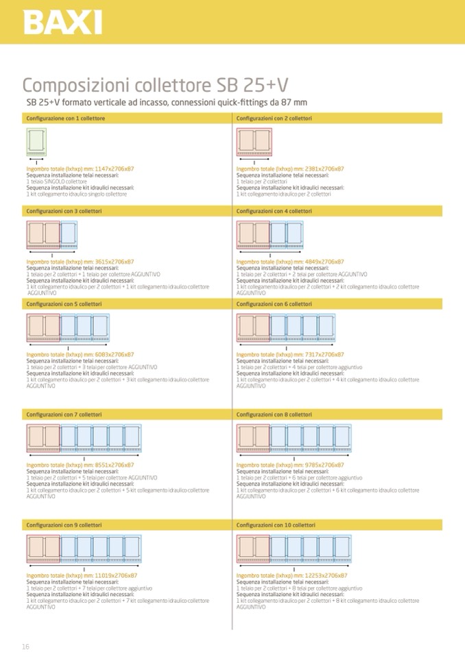 1 telaio per 2 collettori + 1 telaio per collettore AGGIUNTIVO