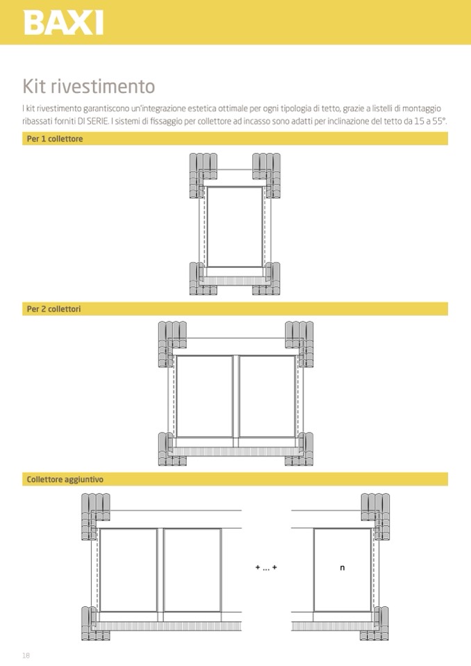 ribassati forniti DI SERIE. I sistemi di fissaggio per collettore ad incasso sono adatti per inclinazione del tetto da 15 a 55°.