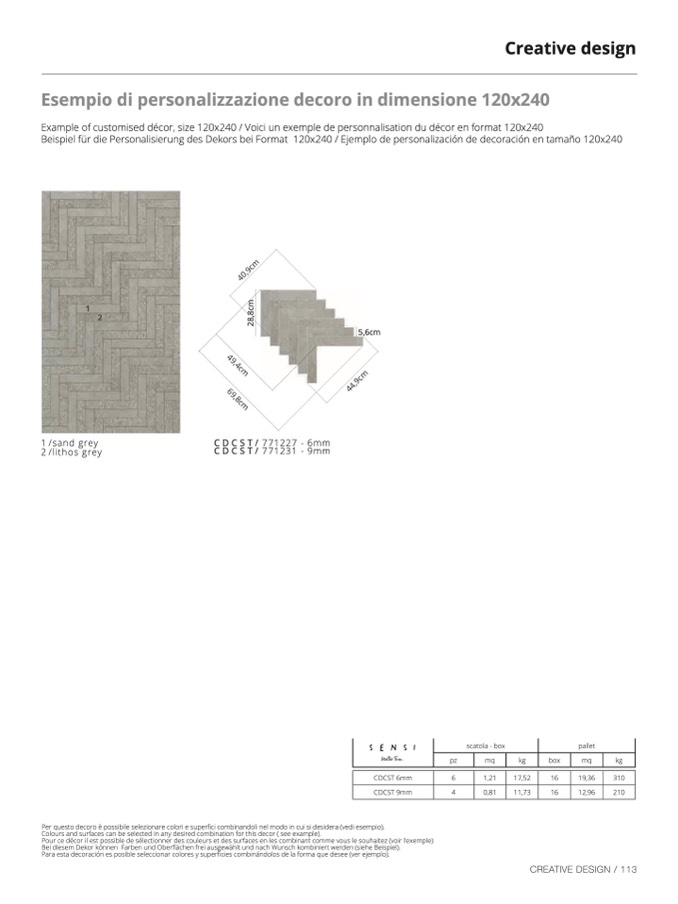 Beispiel für die Personalisierung des Dekors bei Format 120x240 / Ejemplo de personalización de decoración en tamaño 120x240