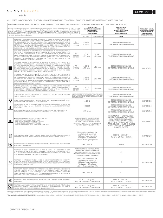 CARATTERISTICHE TECNICHE - TECHNICAL CHARACTERISTICS - CARACTERISTIQUES TECHNIQUES - TECHNISCHE EIGENSCHAFTEN - CARACTERÍSTICAS TÉCNICA