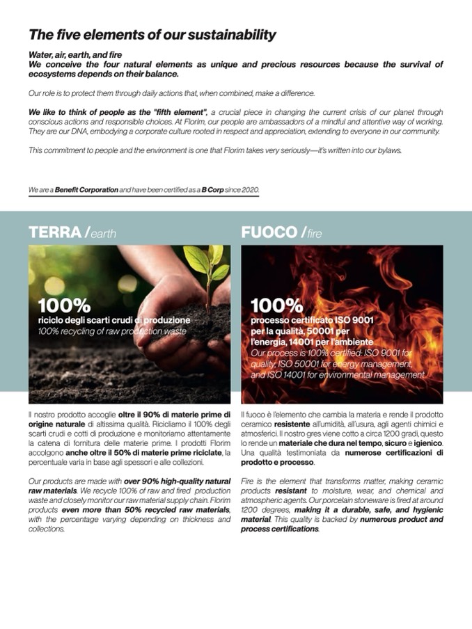 This commitment to people and the environment is one that Florim takes very seriously—it’s written into our bylaws