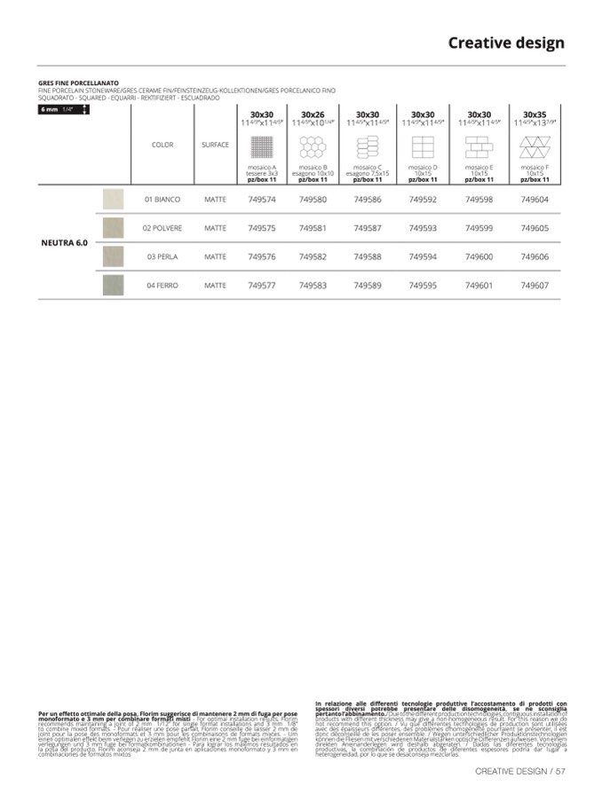 ormato e 3 mm per combinare formati misti - For optimal installation results, Flori