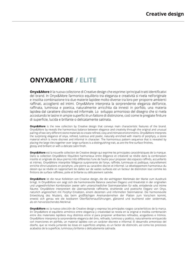 Onyx&More is the new collection by Creative design that conveys main characteristic features of the brand.