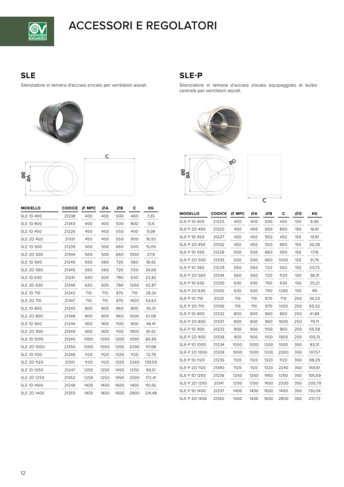 Silenziatore in lamiera d'acciaio zincato per ventilatori assiali.