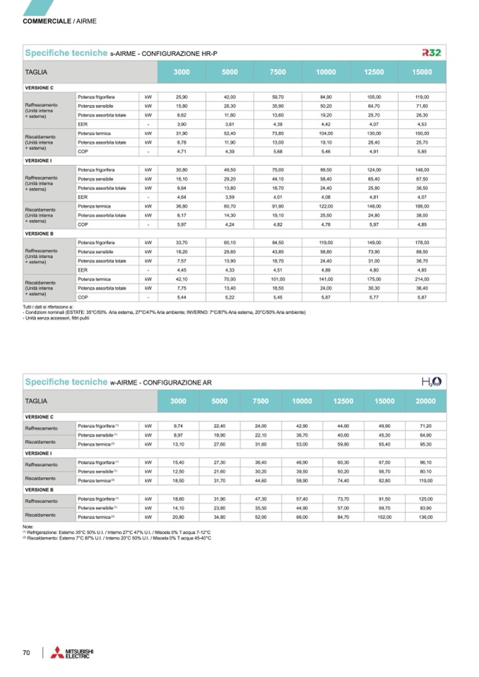- Condizioni nominali (ESTATE: 35°C/50% Aria esterna, 27°C/47% Aria ambiente; INVERNO: 7°C/87% Aria esterna, 20°C/50% Aria ambiente)