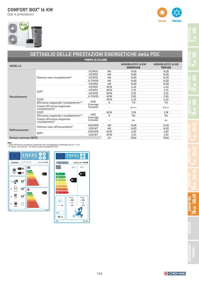 A: temp. aria esterna - W: temp. acqua mandata (DT 5°C)