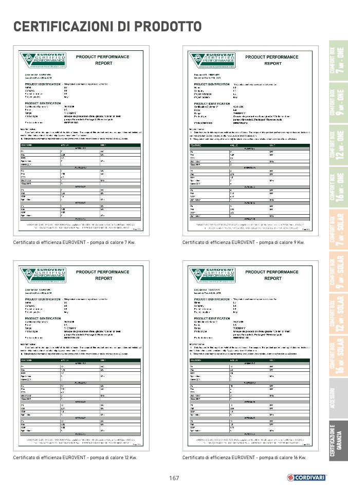 Certificato di efficienza EUROVENT - pompa di calore 16 Kw.
