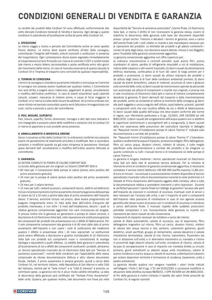 Le vendite dei prodotti della Cordivari Srl sono effettuate conformemente alle