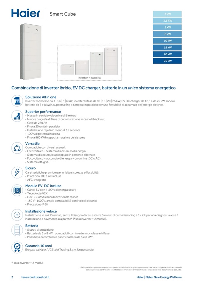 Inverter monofase da 3 | 3,6 | 5 | 6 kW; inverter trifase da 10 | 15 | 20 | 25 kW; EV DC charger da 12,5 e da 25 kW, moduli