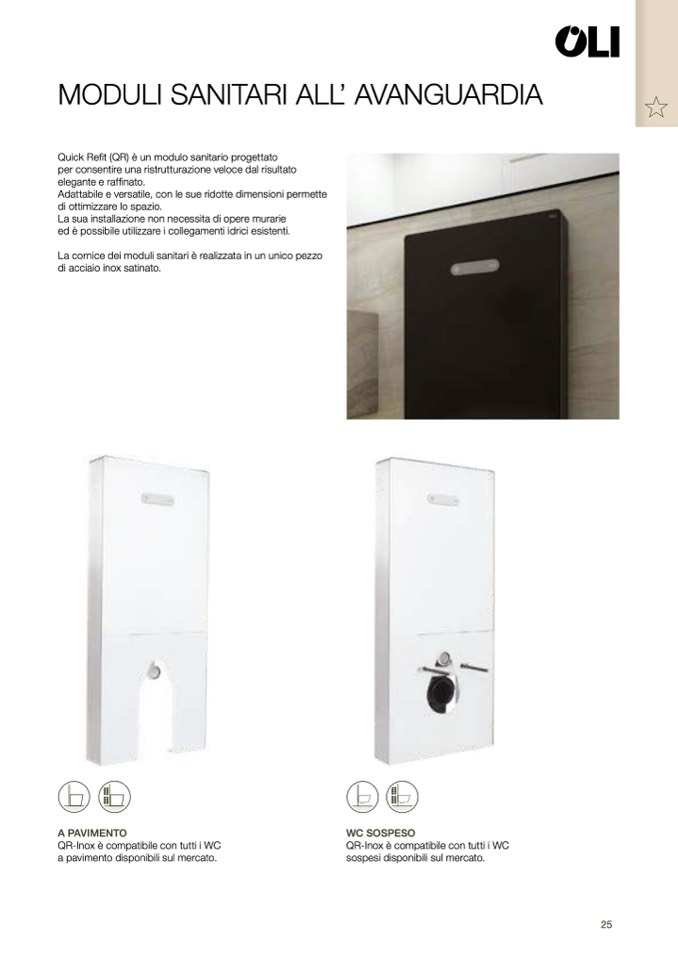 La cornice dei moduli sanitari è realizzata in un unico pezzo