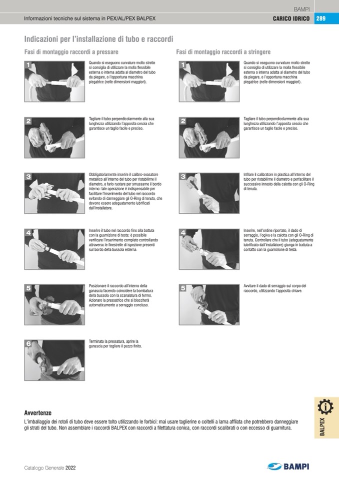 gli strati del tubo. Non assemblare i raccordi BALPEX con raccordi a filettatura conica, con raccordi scalibrati o con eccesso di guarnitura.