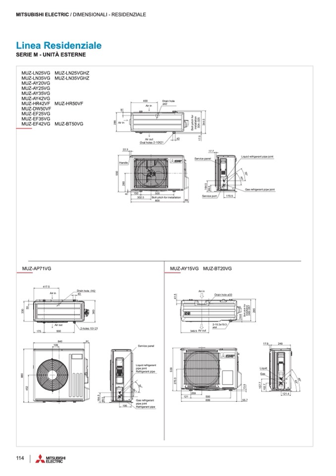 MITSUBISHI ELECTRIC / DIMENSIONALI - RESIDENZIALE