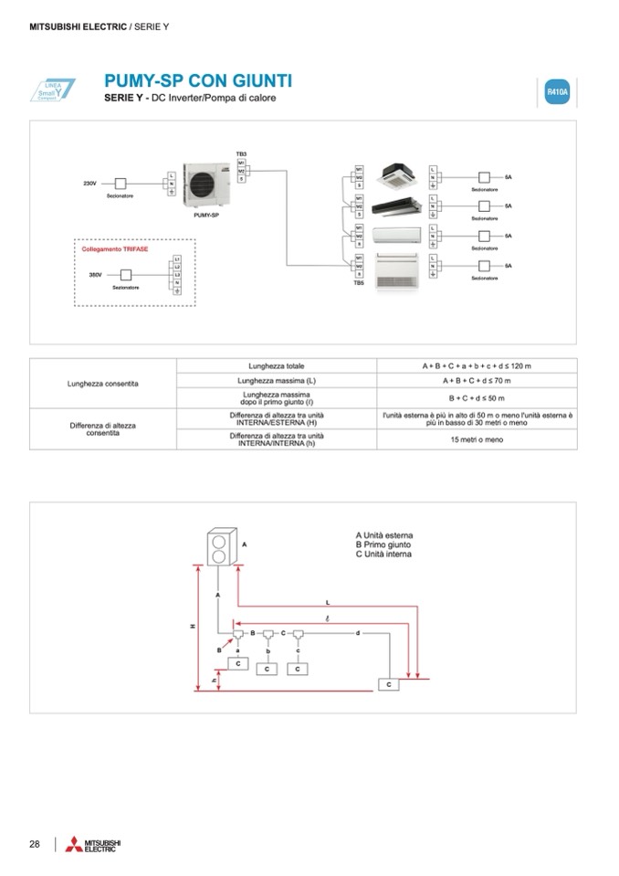 l'unità esterna è più in alto di 50 m o meno l'unità esterna è