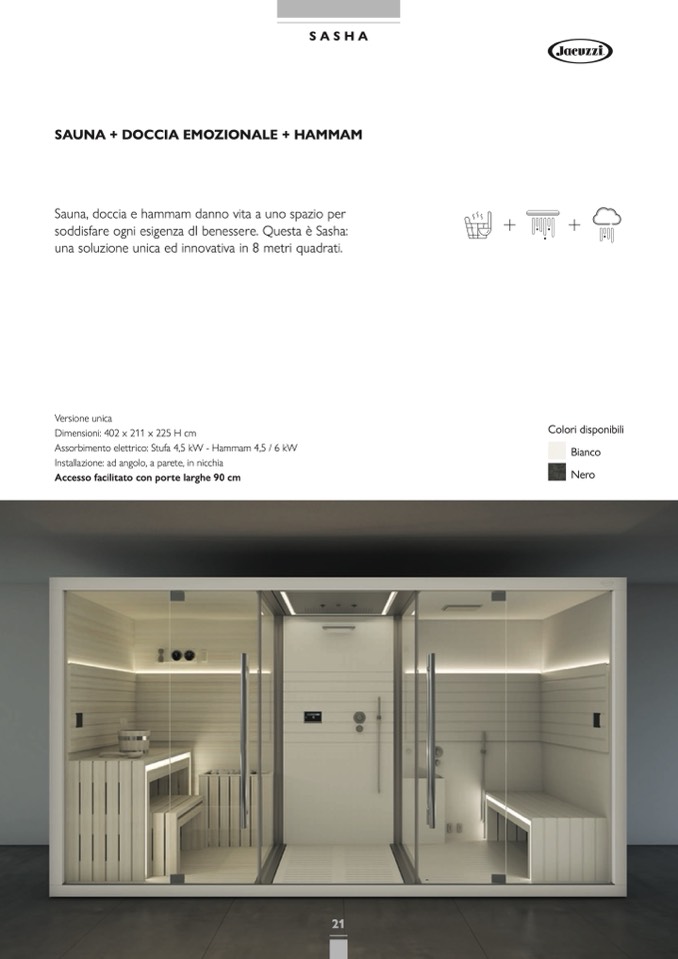 Assorbimento elettrico: Stufa 4,5 kW - Hammam 4,5 / 6 kW