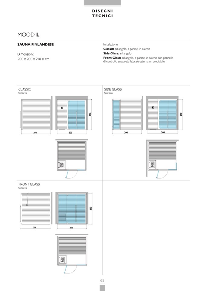 Front Glass: ad angolo, a parete, in nicchia con pannello