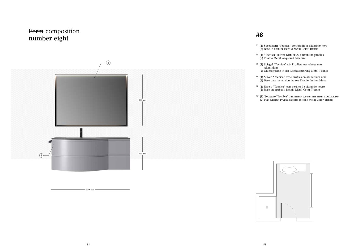 (1) “Tecnica” mirror with black aluminium profiles