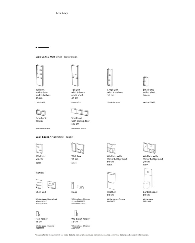 Please refer to the price list for code details, colour alternatives, complementaries, technical details and current information.
