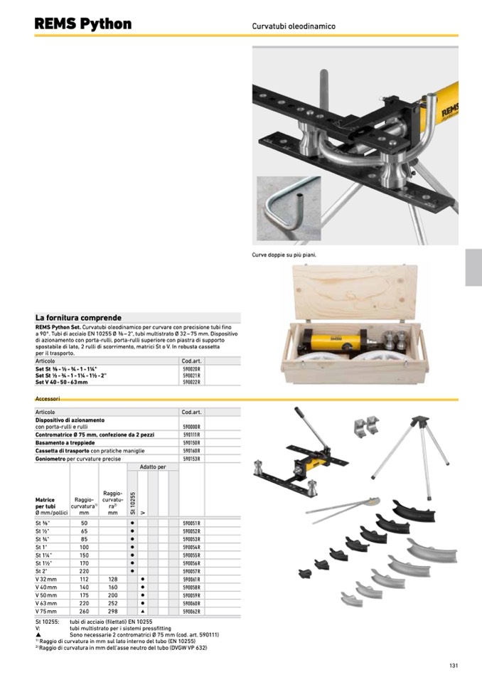 REMS Python Set. Curvatubi oleodinamico per curvare con precisione tubi fino