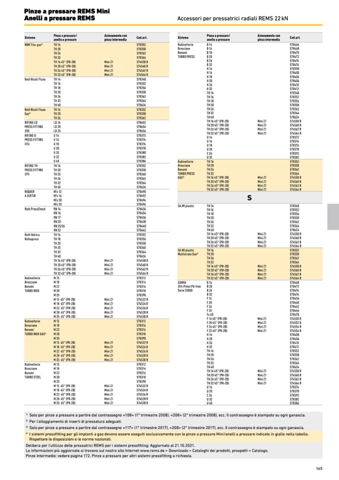 Le informazioni più aggiornate si trovano sul nostro sito Internet www.rems.de > Downloads > Cataloghi dei prodotti, prospetti > Catalogo.