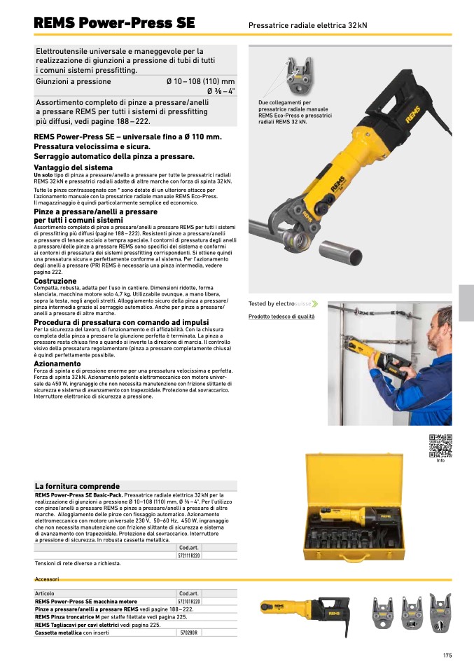 REMS Power-Press SE Basic-Pack. Pressatrice radiale elettrica 32 kN per la