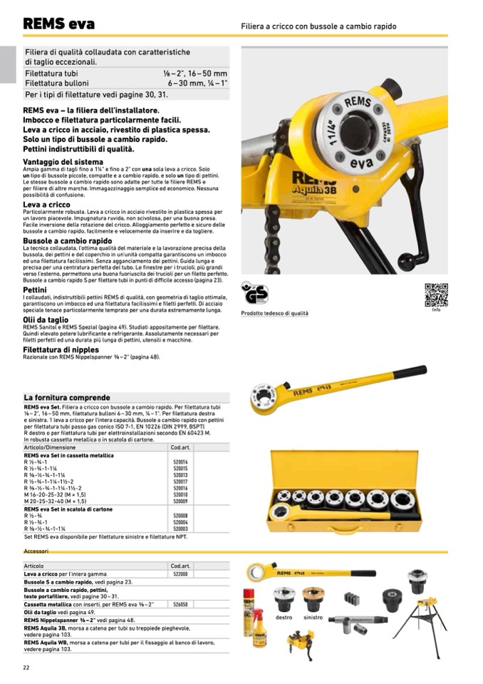 REMS Sanitol e REMS Spezial (pagina 49). Studiati appositamente per filettare.