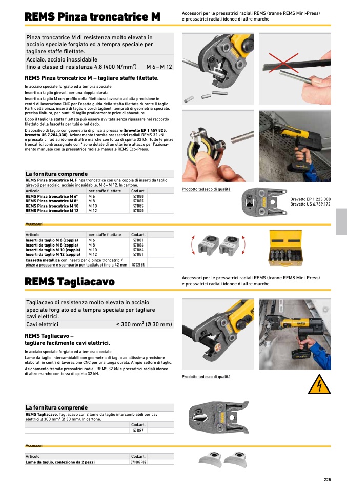 REMS Pinza troncatrice M. Pinza troncatrice con una coppia di inserti da taglio