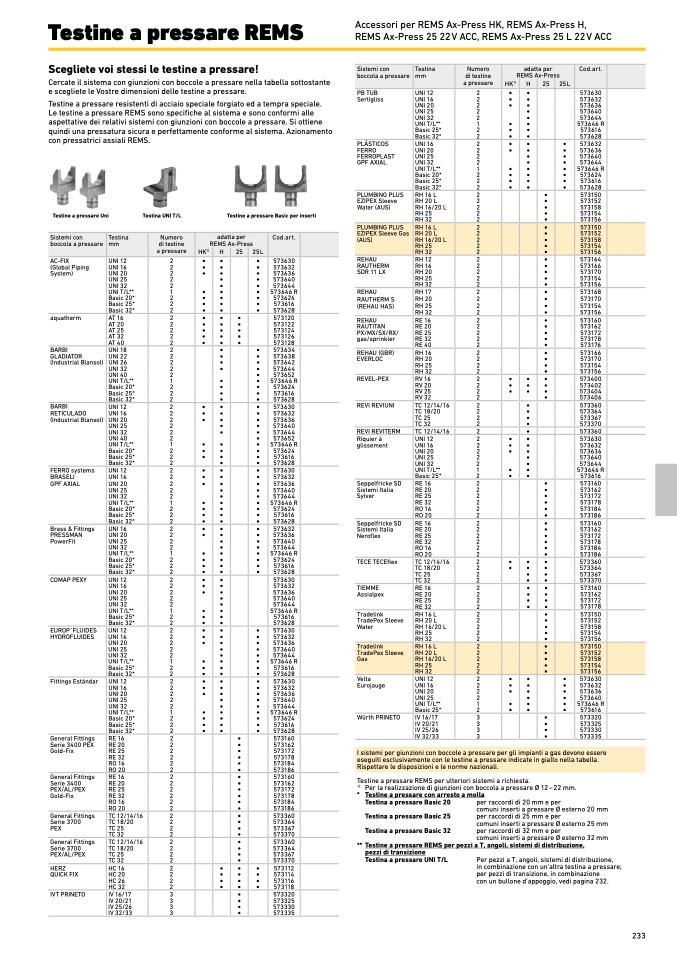 Le testine a pressare REMS sono specifiche al sistema e sono conformi alle