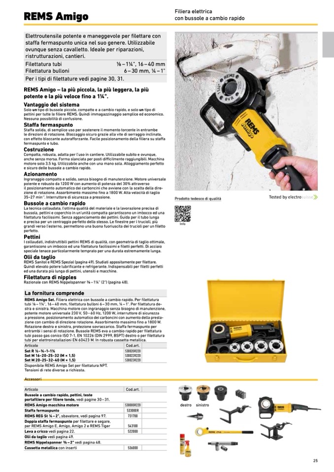 REMS Amigo Set. Filiera elettrica con bussole a cambio rapido. Per filettatura