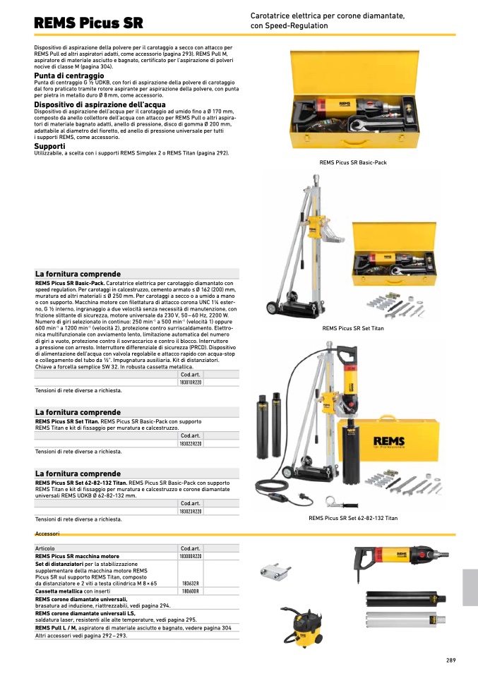 REMS Picus SR Basic-Pack. Carotatrice elettrica per carotaggio diamantato con