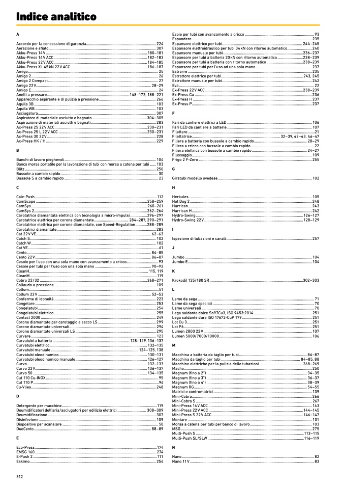 Espansore elettroidraulico per tubi 34 kN con ritorno automatico......................... 240