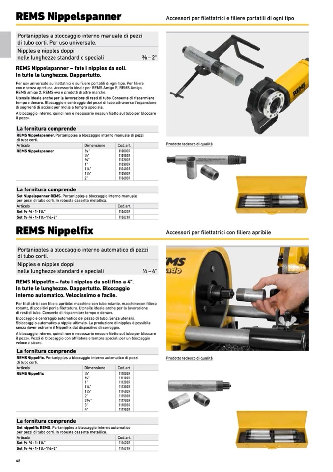 REMS Nippelspanner. Portanipples a bloccaggio interno manuale di pezzi