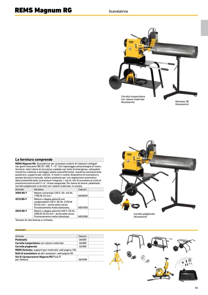 REMS Herkules, supporti per materiale, vedi pagina 105.