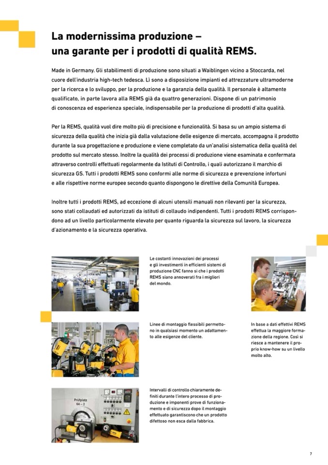 Inoltre tutti i prodotti REMS, ad eccezione di alcuni utensili manuali non rilevanti per la sicurezza,