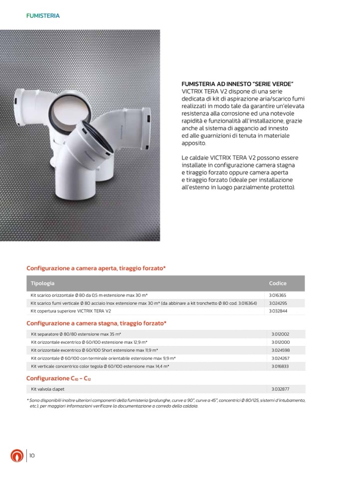 * Sono disponibili inoltre ulteriori componenti della fumisteria (prolunghe, curve a 90°, curve a 45°, concentrici Ø 80/125, sistemi d’intubamento,