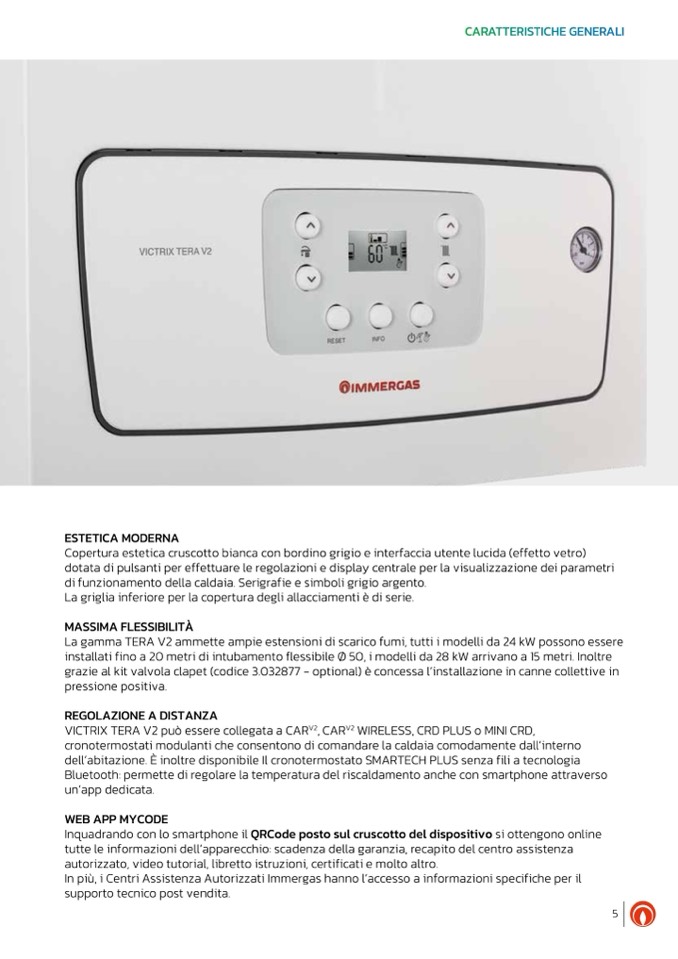 La gamma TERA V2 ammette ampie estensioni di scarico fumi, tutti i modelli da 24 kW possono essere
