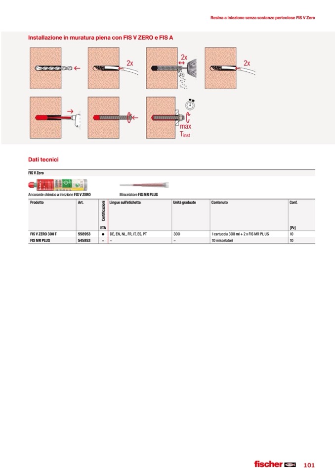 Resina a iniezione senza sostanze pericolose FIS V Zero