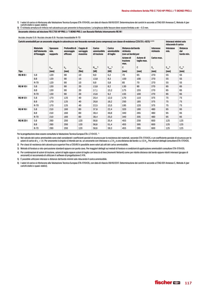Ancorante chimico ad iniezione FIS C700 HP PRO.1 / T-BOND PRO.1 con Bussola filettata internamente RG M I
