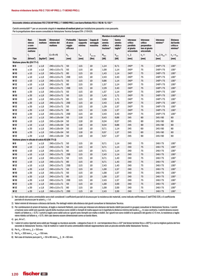 secondo la Valutazione Tecnica. I tipi di mattoni e i valori di carico ammissibile indicati rappresentano solo un piccolo estratto della Valutazione Tecnica.