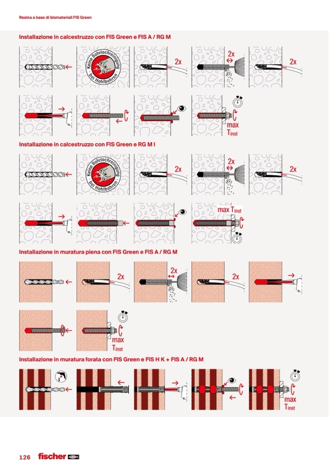 Installazione in muratura piena con FIS Green e FIS A / RG M