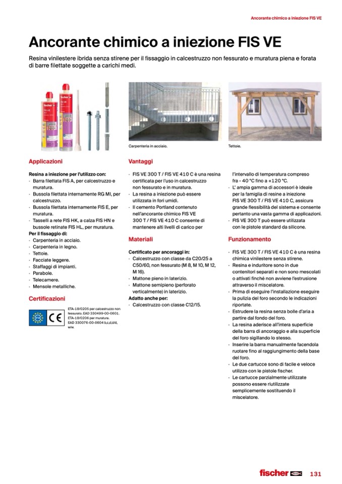 Resina vinilestere ibrida senza stirene per il fissaggio in calcestruzzo non fessurato e muratura piena e forata