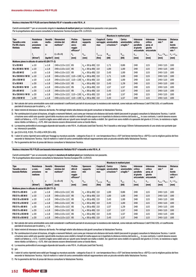 per un ancorante singolo in muratura di mattoni pieni per installazione passante o non passante.