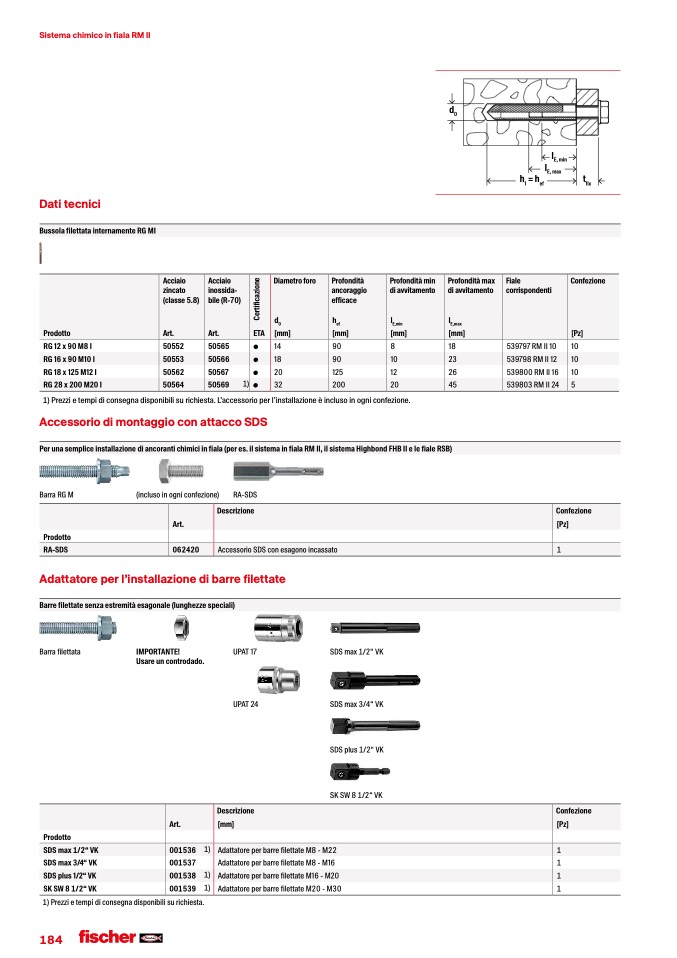 Per una semplice installazione di ancoranti chimici in fiala (per es. il sistema in fiala RM II, il sistema Highbond FHB II e le fiale RSB)