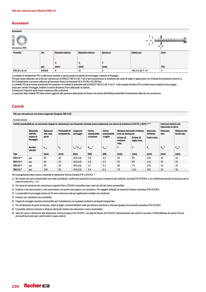 9) valoridicaricosiriferisconoallaValutazioneTecnicaEuropeaETA-15/0352,condatadirilascio05/10/2020.DeterminazionedeicarichiinaccordoaTR055/MetododicalcoloETAper