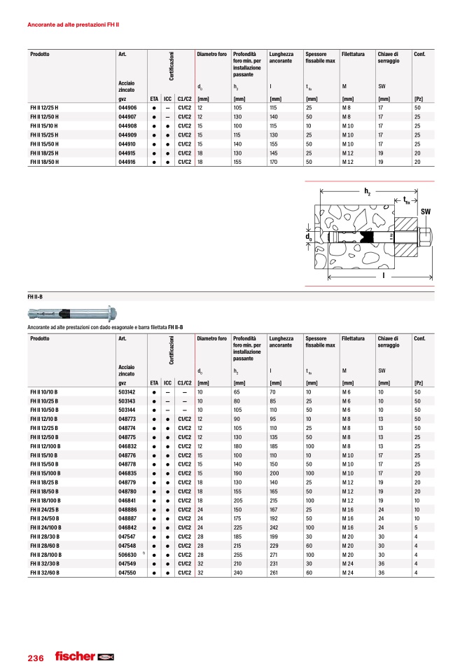 Ancorante ad alte prestazioni con dado esagonale e barra filettata FH II-B