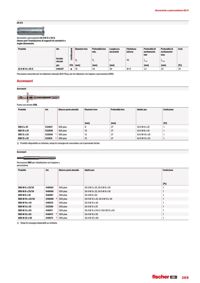 1) Prodotto disponibile su richiesta, tempi di consegna da concordare con il personale fischer.