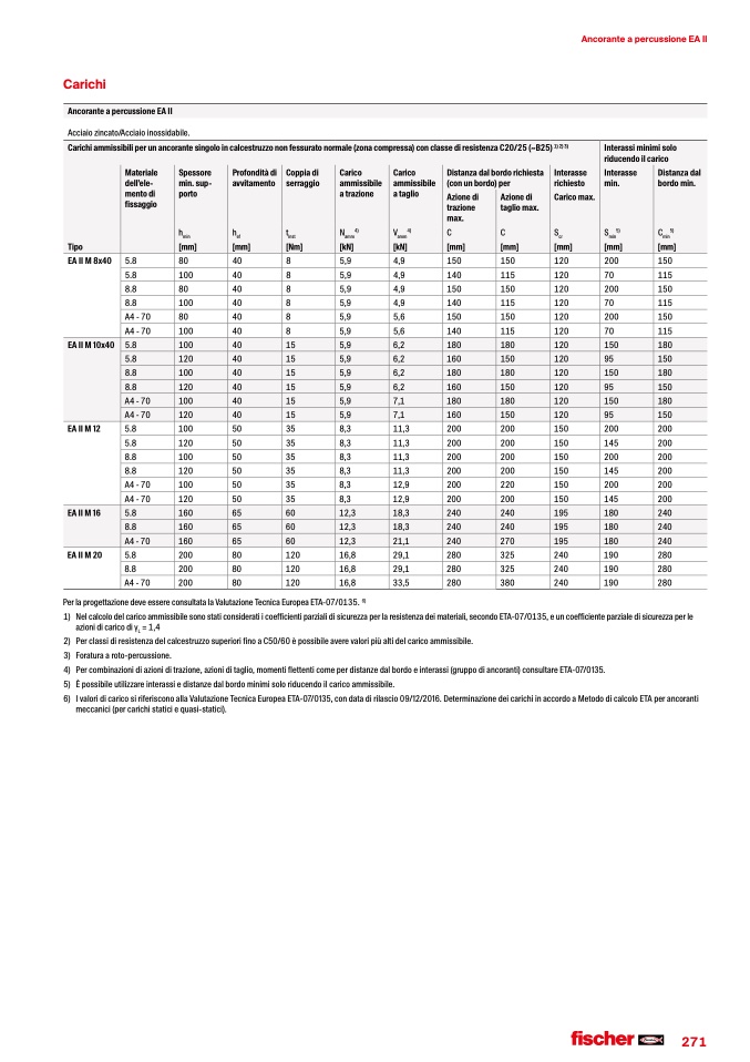 6) IvaloridicaricosiriferisconoallaValutazioneTecnicaEuropeaETA-07/0135,condatadirilascio09/12/2016.DeterminazionedeicarichiinaccordoaMetododicalcoloETAperancoranti