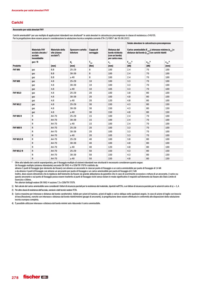 1) Nelcalcolodelcaricoammissibilesonoconsideratiifattoridisicurezzaparzialiperlaresistenzadelmateriale,riportatinell’ETA,eunfattoredisicurezzaparzialeperleazionidicaricodiγL=1,4.